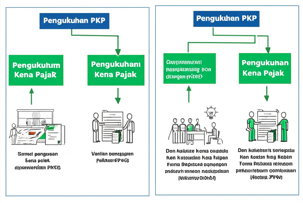 Perbedaan antara Pengusaha Kena Pajak (PKP) dan Non PKP terletak pada hak dan kewajibannya sebagai wajib pajak. PKP memiliki kewajiban memungut PPN atas transaksi jual beli barang dan jasa, serta berhak mengajukan pengembalian pajak setelah melaporkan seluruh input tax yang telah dibayarkan. Non PKP, di sisi lain, tidak wajib memungut pajak dan harus memperhatikan kondisi yang berbeda, seperti tidak bisa menyerahkan faktur pajak atau mengajukan kredit pajak. Proses perbedaan ini juga merefleksikan struktur pajak yang diterapkan dalam skema biaya produksi maupun distribusi.
